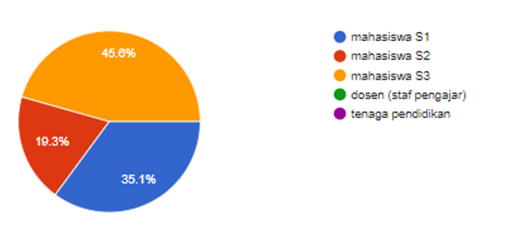 Berdasarkan survey tentang perkuliahan tengah semester 2021 yang diberikan kepada mahasiswa S1. S2, S3 departemen arsitektur FT Universitas Diponegoro (lihat diagram 1) yang tingkat partisipasi mayoritas oleh mahasiswa S3 didapatkan bahwa tingkat kepuasaan perkuliahan pada tengah semester genap ini 40% puas dan 30.8% sangat puas (diagram 2)